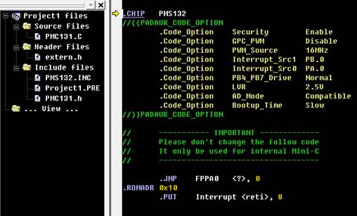 include files 里面的*.PRE文件中,*代表項目名。當項目已經建立后,一般通過此處來更換不同的IC型號。將新選擇的芯片型號更改在“.CHIP ”