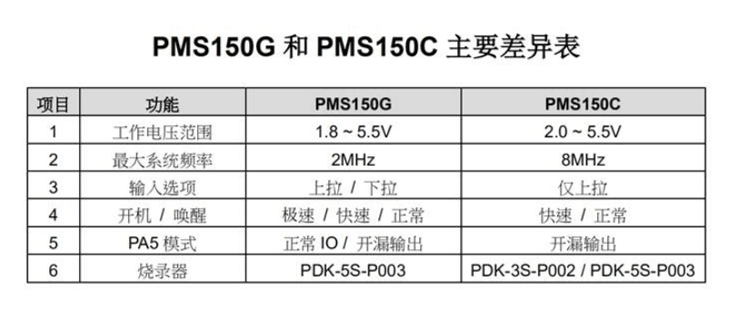 PMS150G脫胎于PMS150C,卻比PMS150C具更優秀的性能,具更高的性價比,也增加了IO腳的上下拉電阻功能,令用途更廣泛。