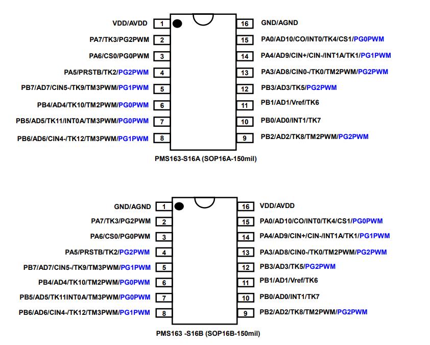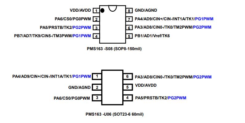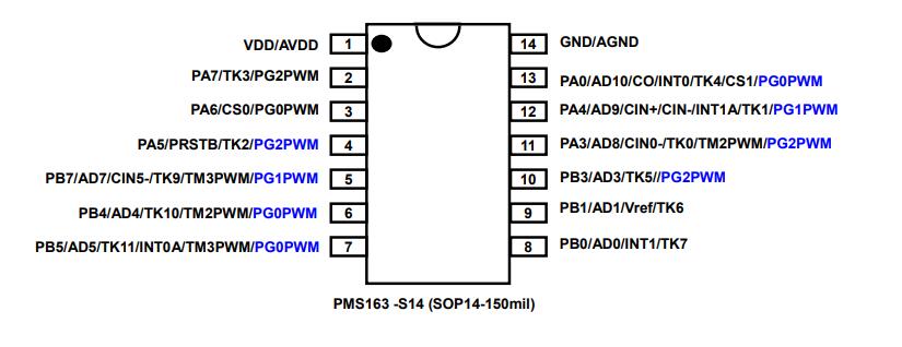 PMS163系列,應廣單片機,PMS163-S08 ,PMS163-S14 ,PMS163-S16,帶觸摸的單片機芯片。,有ADC的觸摸芯片。